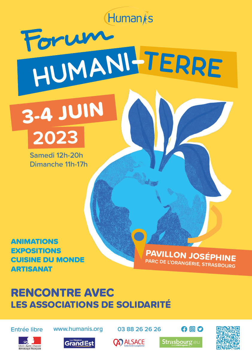 L'organisation de cette 16e édition du Forum HUMANI-TERRE bat son plein et promet un beau programme ! Convivialité, échanges et moments festifs seront au rendez-vous au Pavillon Joséphine – Parc de l'Orangerie – à Strasbourg pour parler de solidarité locale et internationale !