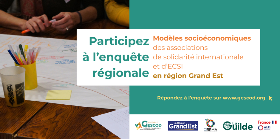 Dans le cadre de sa mission d'appui aux acteurs régionaux de la coopération et de la solidarité internationale, Gescod lance une étude dédiée aux modèles socio-économiques des associations de solidarité internationale et d'ECSI du Grand Est. Cette démarche a pour objectif d'analyser vos modes de financement et de fonctionnement, ainsi que les enjeux auxquels vos structures sont confrontées, afin de disposer d'une vision plus fine des dynamiques associatives du secteur.