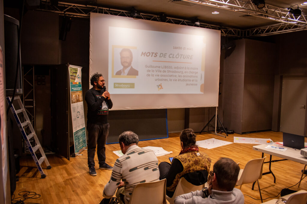 Enfin, les mots de clôture ont été prononcés par M. Guillaume LIBSIG, Adjoint à la maire de Strasbourg, en charge de la vie associative, les animations urbaines et la vie étudiante et la jeunesse.